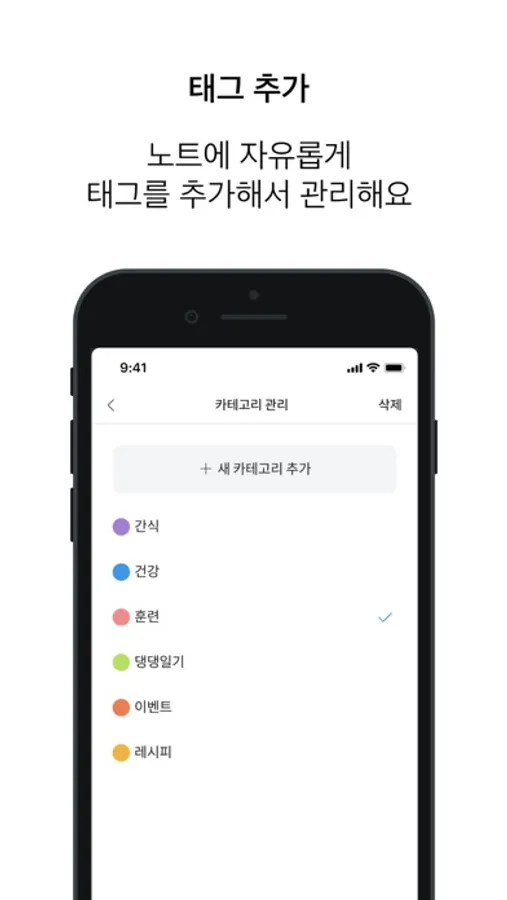 - 태그를 자유롭게 추가해서 태그별로 노트를 만들고 관리해요