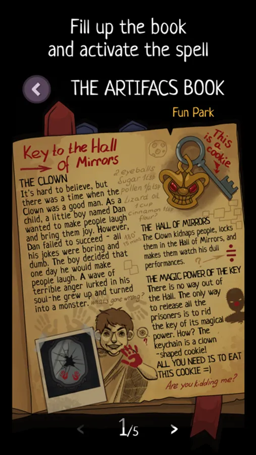 Each artifact contains a piece of dark power. Find them all to defeat evil!
