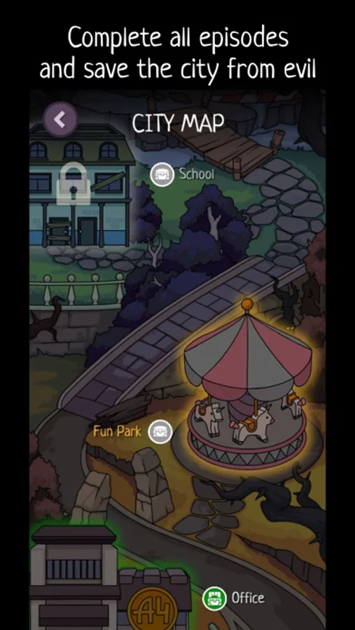 This city was called Joyville. But one day it was covered by the dome of darkness. Now it's Chaosville - the city of horror. The darkness turned this place into an anomalous zone and transformed the residents into terrible monsters. Abandoned buildings, ugly beasts, and other creepy stuff on your way. Your mission is to return the sun to the city and destroy the dome of darkness. How? - Be creative to find magic artifacts and collect gems of kindness.