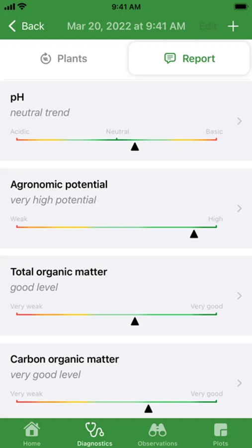 Soildiag was created to be your farming activity companion. It will allow you to follow the progress of your soils for each of your plots. You can create plots, and for each plots, you can assign them diagnostics. Each diagnostics is timestamped so you can keep track of your soil evolution history.