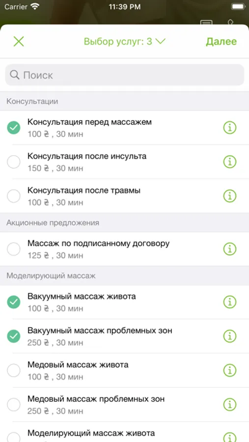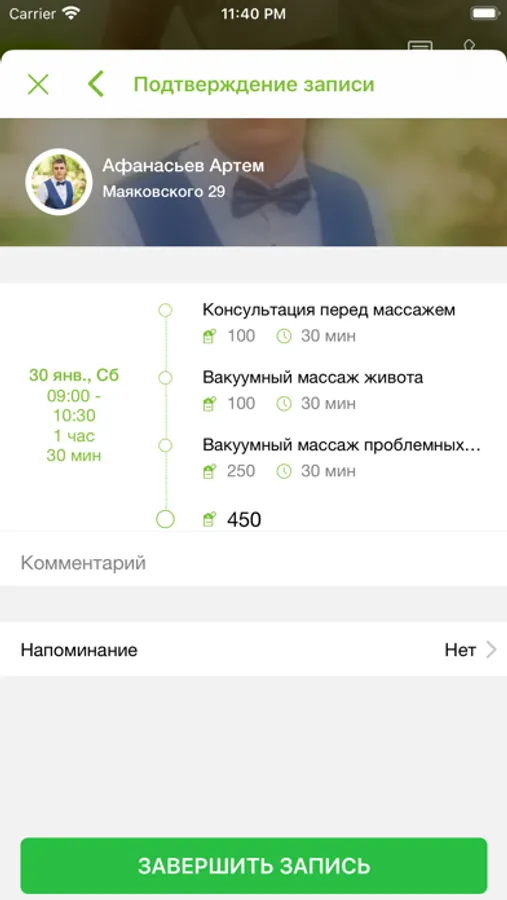 * записаться на процедуру;