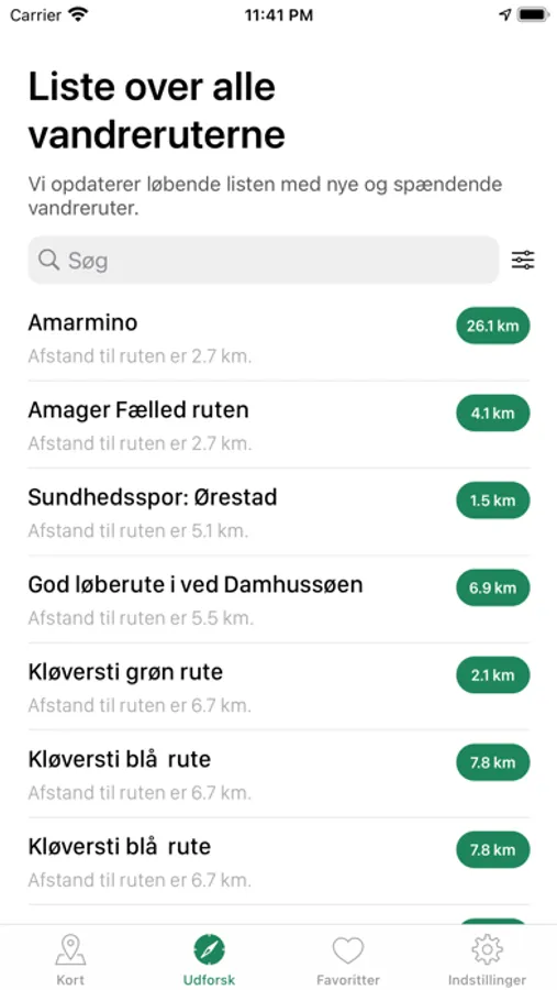 - Nemt og hurtigt overblik over de tætteste ruter.