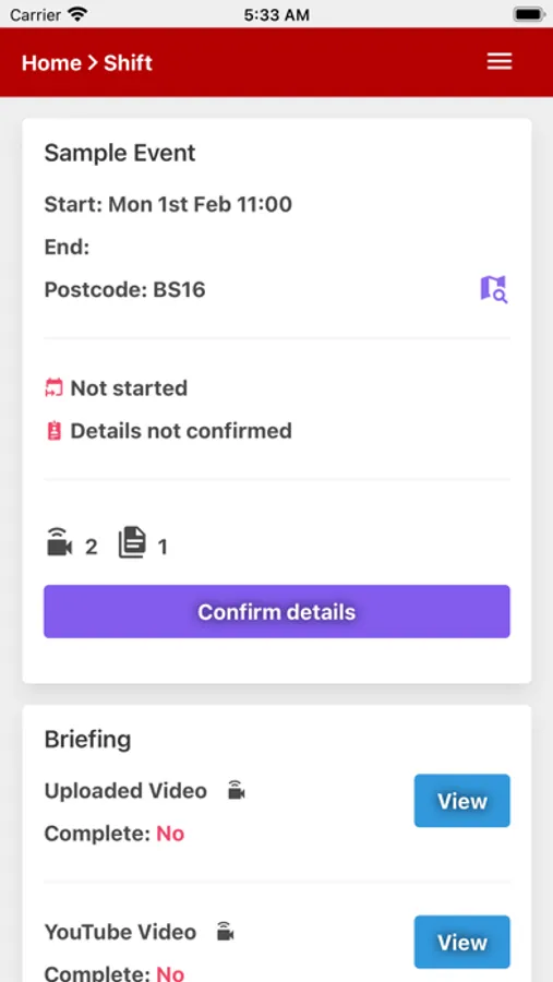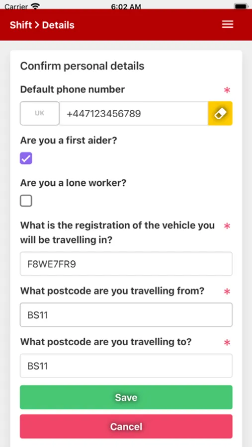 From this app, you will be able to load your work schedule and send us updates directly from the app. This includes information like travel and contact details.
