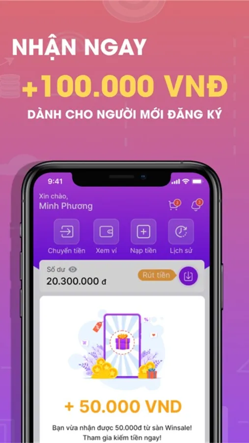 Ứng dụng winsale chấp nhận 1 trong 3 phương thức thanh toán của khách hàng