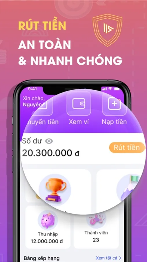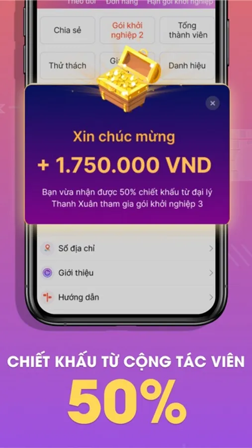 - Tính năng đăng ký làm thành viên. Người dùng đăng ký trở thành khách hàng trên ứng dụng thông qua Số điện thoại, Tên và Mã người giới thiệu.