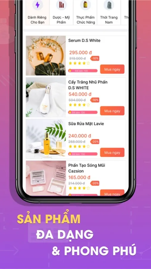 - Tính năng xem sản phẩm. Người dùng xem thông tin các sản phẩm trên ứng dụng (Tên sản phẩm, giá, công dụng, thành phần,…)