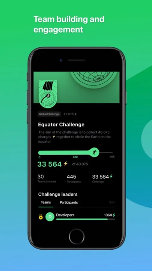 1. Global Challenge — participants unite in the app to solve a shared challenge. The application captures everyone's contribution in real-time and shows how the team is moving towards the goal.