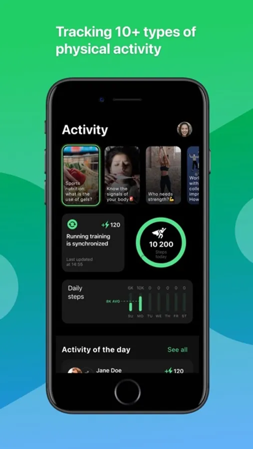- auto sync with Apple Health, Google Fit, Polar Flow и Garmin Connect