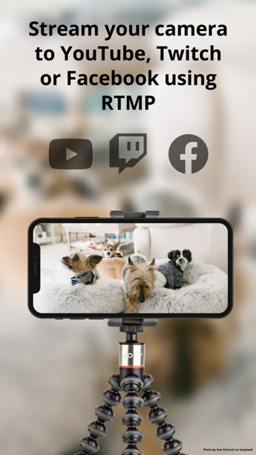 * Stream live video of device camera over Wi-Fi / 3G/ 4G / LTE.
