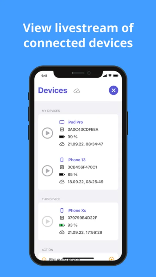* Live-streaming that allows you to see what's happening in real-time, trigger manual recordings, and switch between front and back camera.