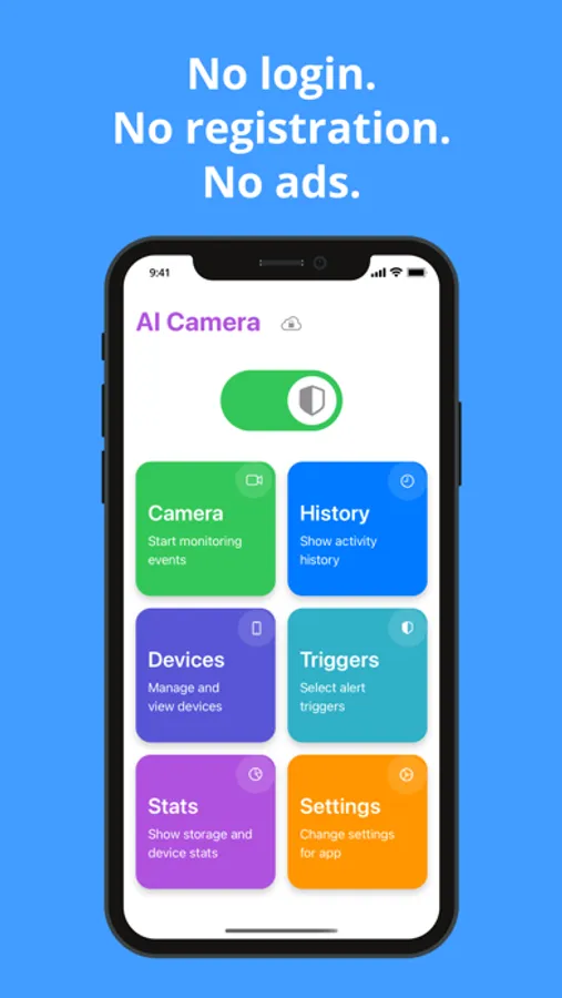 When it comes to privacy, AiCam takes no chances. All video processing, detection, and recognition work takes place offline on your device so that your data stays private. We don't collect any information from our users, and the app requires an internet connection only if you want to save footage to iCloud or receive push notifications.
