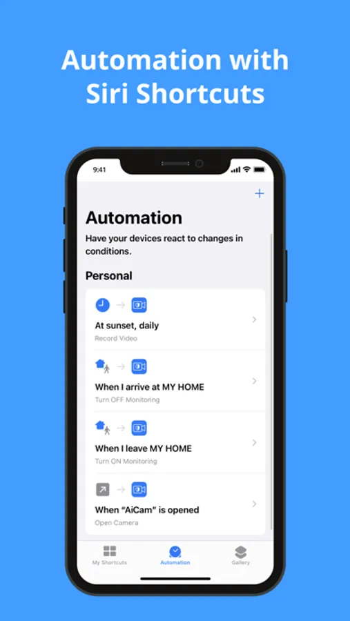 * Use the Apple Shortcuts app to control AiCam based on triggers like time schedule or location.