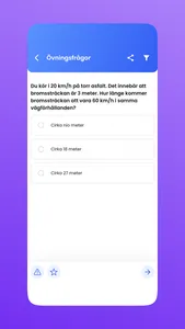 Vår app erbjuder dig möjligheten att ta testet med en nedräkningstimer, vilket simulerar ett riktigt test. Genom att använda nedräkningstimern övar du dig inför Trafikverkets riktiga teoriprov, så att du enkelt kan ta ditt körkort.