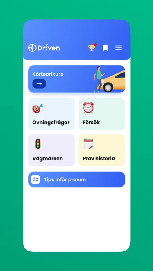 Vår fantastiska app ger dig all den kunskap som du behöver för att klara körprovet och körkortsfrågorna, så att du äntligen får ditt körkort! Appen är gratis och rolig att använda och kommer hjälpa dig att få ditt körkort.i