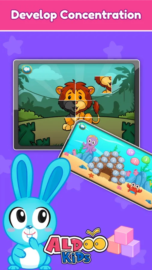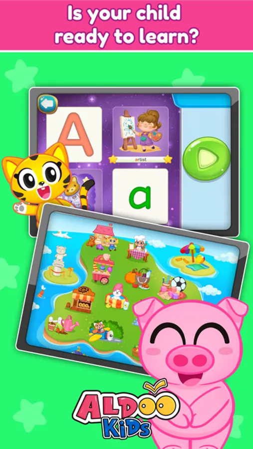 The world of Aldoo Kids contains high quality crafted kids games designed with special attention to details, developed in cooperation with educational experts. Engaging digital environment where kids learn preschool concepts and numerous skills while having fun through exciting games.