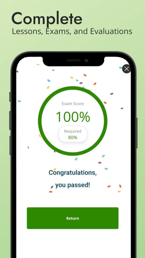 Once you’ve finished a course, you can complete the evaluation and exam within the app and share the certificate with your supervisor.