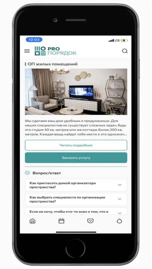 Наше приложение Про порядок, это проект по организации пространства, лучшие специалисты, которые организуют хранение ваших вещей и добавят места привычным помещениям