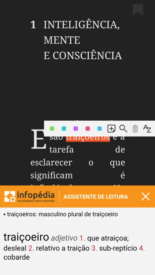 - Consulte os significados das palavras, com apenas um toque, com o apoio do assistente de leitura da Porto Editora.