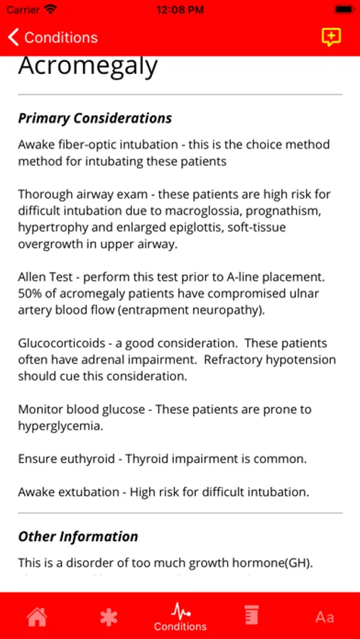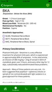 This application helps anesthesia professionals find answers quickly to common questions. The primary purpose is to provide the clinician with the highlighted anesthetic implications of specific diseases, surgical cases, and drugs. In addition, a searchable list of over 1000 acronyms is also provided. A calculator has also been created to help with maximum local anesthetic, estimated blood volume, maximum allowable blood loss, fluid calculations, equipment, vitals, and more.