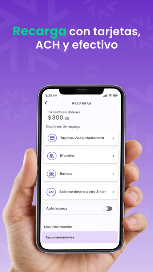 ▬ Recarga tu monedero digital con tu tarjeta de crédito o débito internacional, efectivo, transferencias bancarias ACH o solicitando a un amigo que te envíe dinero a través de Zinli