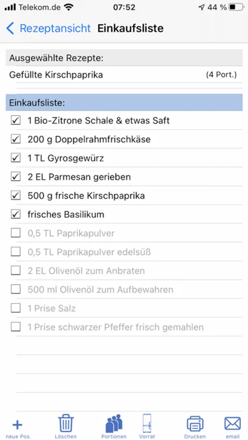 - If you also use the myVorrat app, you can also see which ingredients you already have for a recipe and don't need to buy.