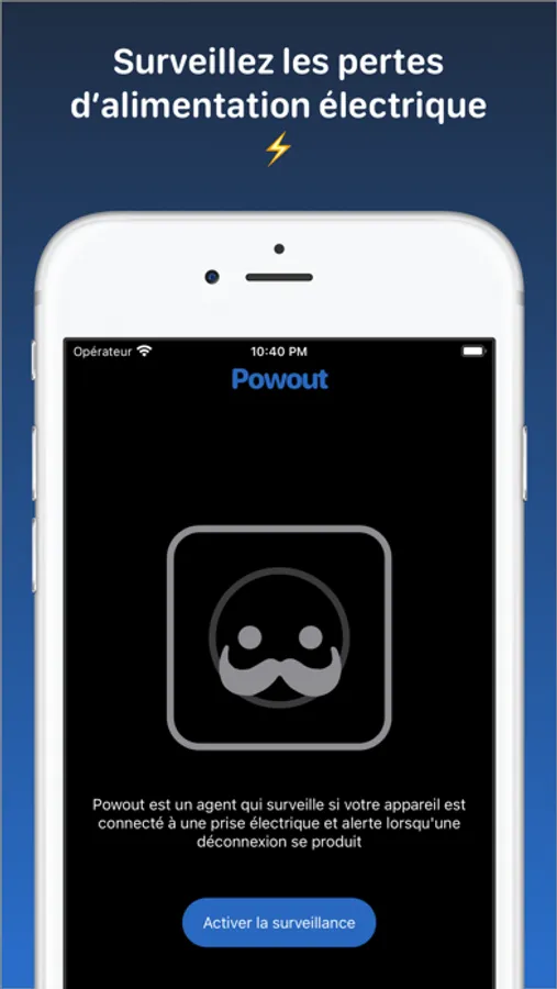 Powout est un agent qui surveille si votre appareil est connecté à une prise électrique et alerte lorsqu'une déconnexion se produit.