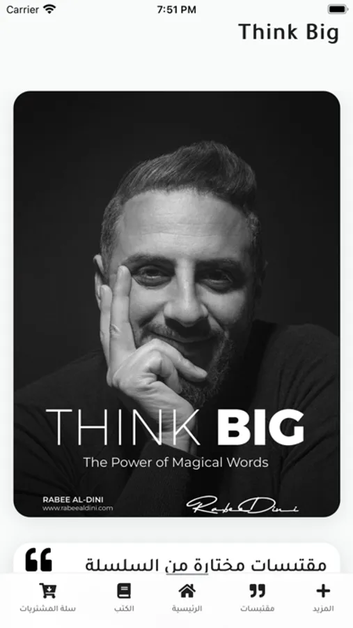 مجموعة إصدارات "Think Big" عبارة عن سلسلة موسوعية نقدم خلالها مختلف المعارف الإنسانية في مجال التنمية البشرية وإدارة الأعمال، بأسلوب مبسط وسهل لتكون دليلاً ومرجعاً للقارئ العادي والمختص، فهي شاملة ومتكاملة تهدف الى مساعدة الاخر في اكتشاف ذاته، كما ترشده نحو الطريق الصحيح وتوجهه لتحقيق هدفه بأفضل السبل وأيسرها ...