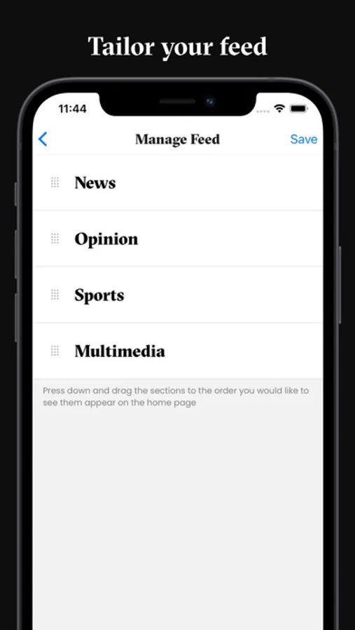 • MANAGE FEED: Change the order in which categories on your home feed change.