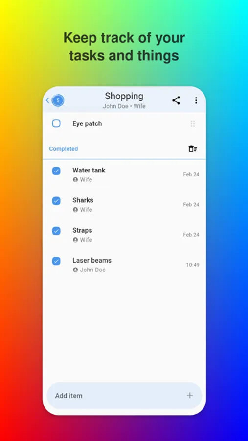 Lists can be shared between your devices or trusted contacts simply using the list id.