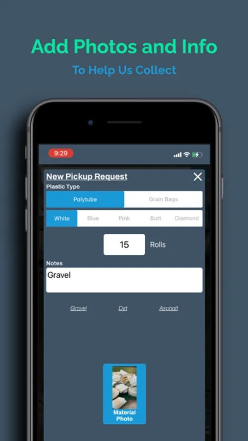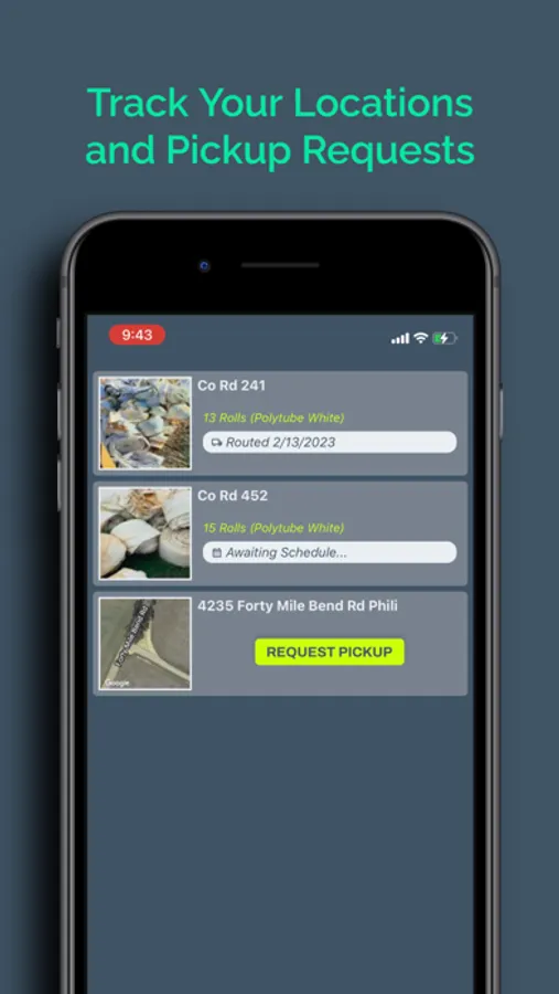 Schedule pickup of your agricultural polytube for recycling! Find your plastic location on the map and snap a photo.