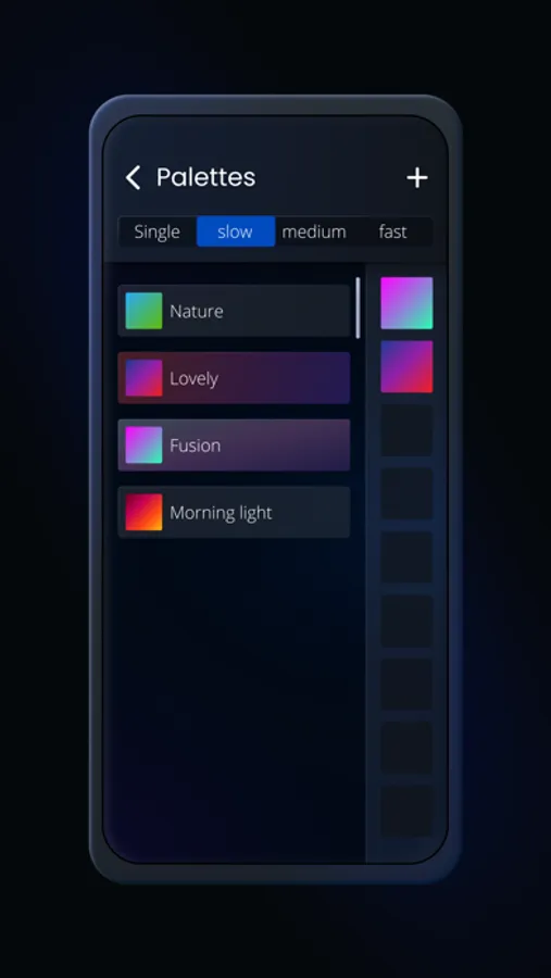 Choose a color palette from our excellent collection or create new ones to your liking. Multiple palettes can be selected and automatically switched to keep things interesting and colorful.