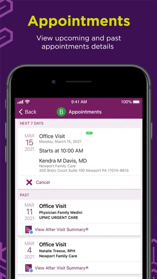 • Manage your appointments and save to your calendar