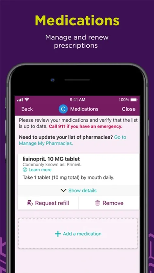 • Review and Renew prescriptions without calling your doctor’s office