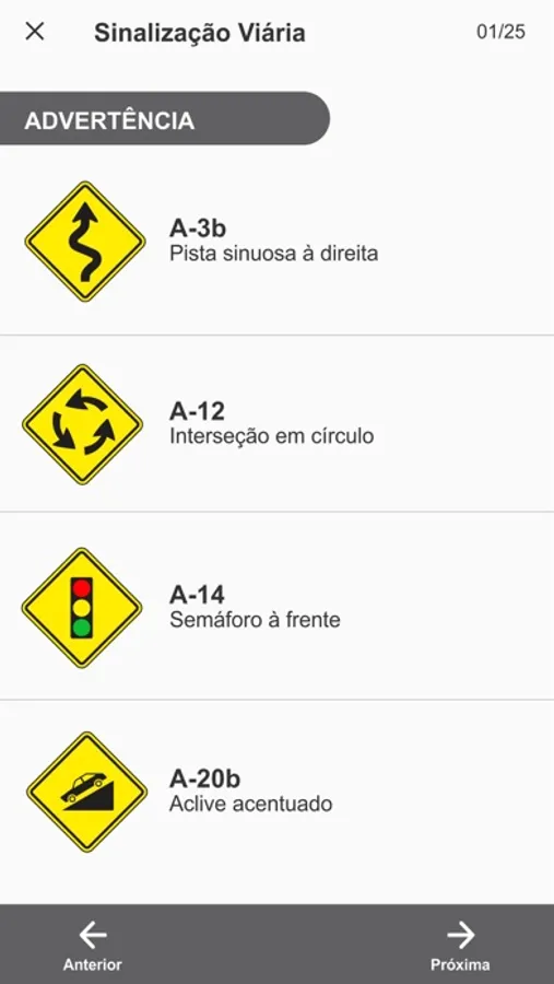 - Com esta ferramenta o candidato pode conhecer todas as placas de trânsito brasileiras, separadas por categoria;