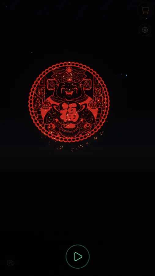应用中特有的新年祝福语与剪纸主题烟花反应出春节特色。应用中可以放普通烟花,新年主题烟花,还可以放英文字母烟花。
