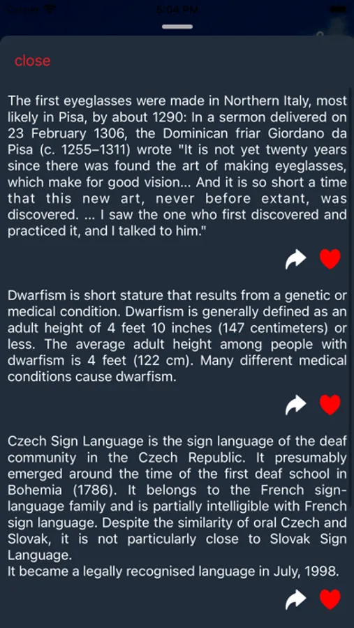 - Add facts to your favourites list to have access to most impressive or interesting facts.