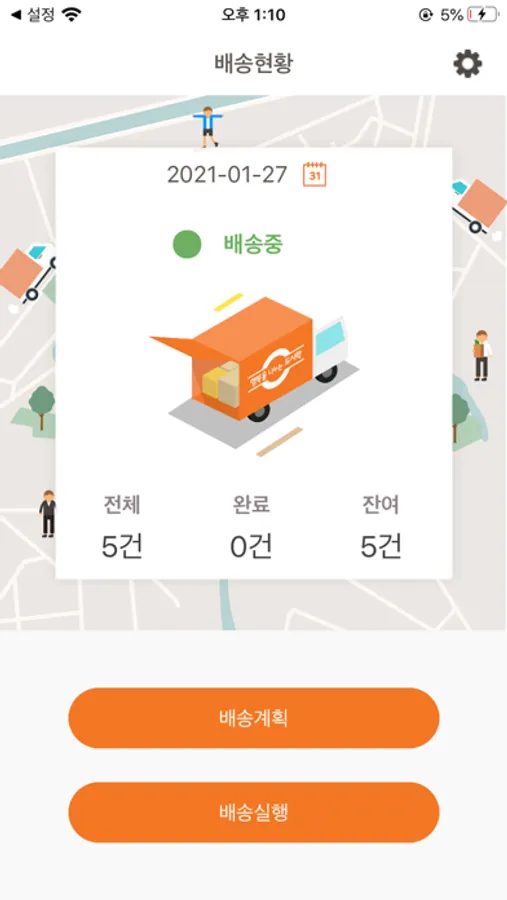 대기/배송중/완료/취소등의 배송진행상황 및 출발, 도착지연/장기정차/경로이탈 등의 상황을 실시간으로 확인 할 수 있습니다.