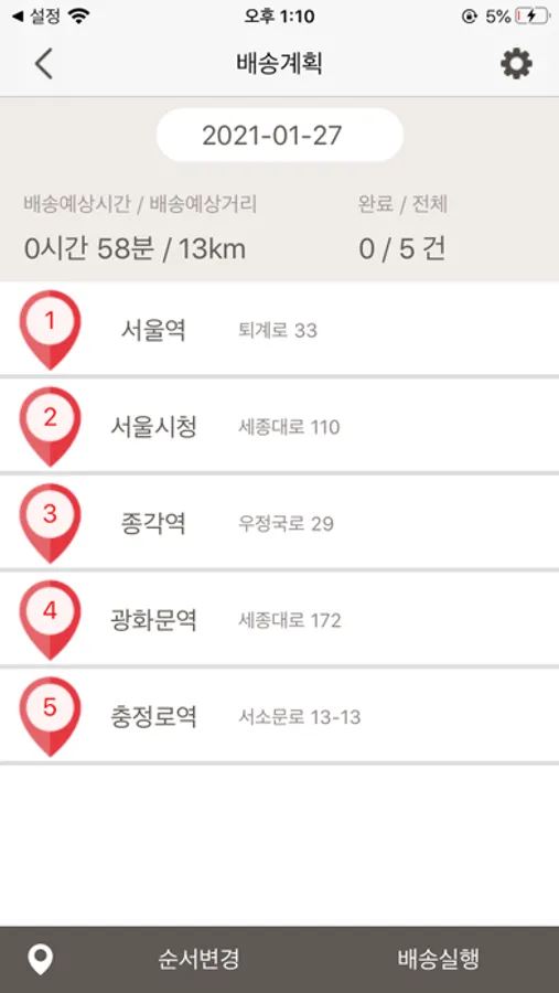 또한, 기사님이 직접 운송순서를 변경하여 원하는 경로로 업무를 진행 할 수도 있습니다.