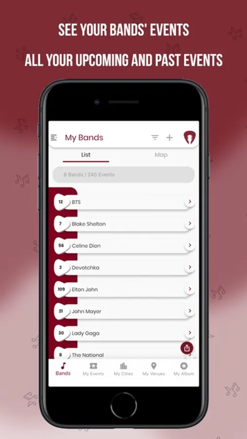 - Save all your events and shows to your own Event List. Track and view all your upcoming concerts in an interactive map.