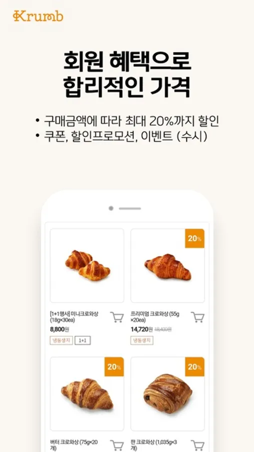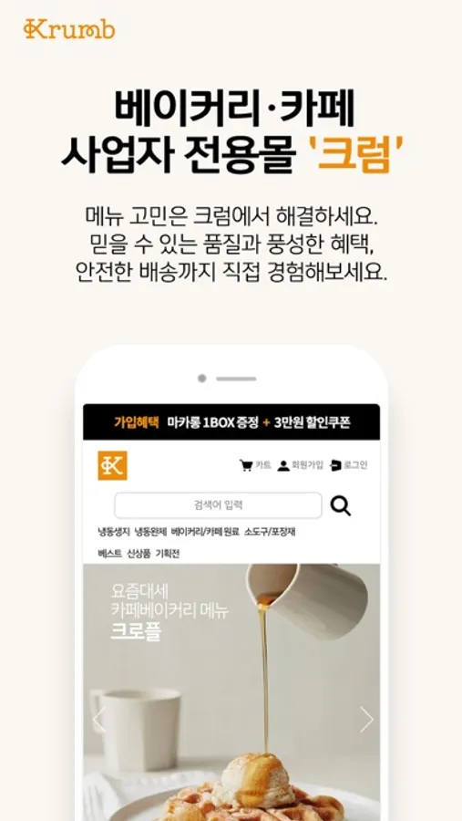 베이커리 · 카페 사업자 전용 쇼핑몰 크럼(Krumb) 입니다.
