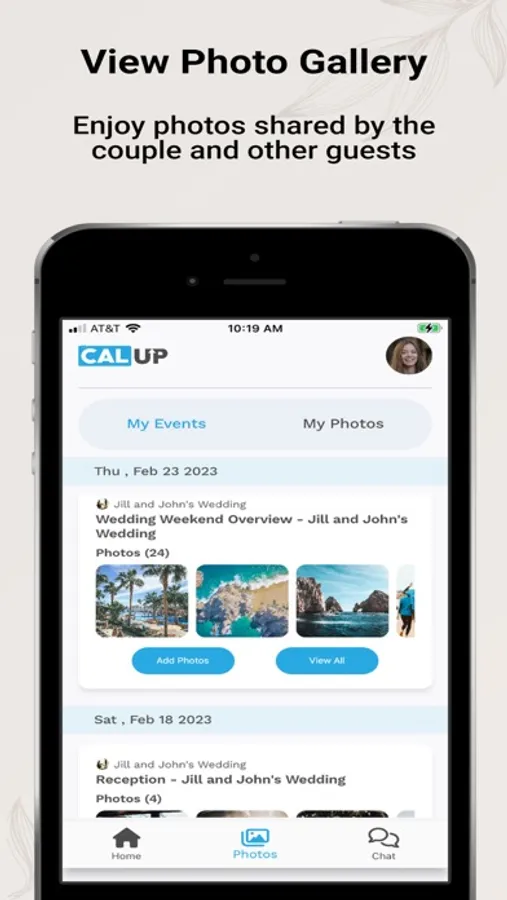 The CalUp Guest App is where wedding planners & couples publish itineraries for guests, the wedding party, close family, etc. Guest App users stay up-to-date on their events, and may receive notifications or alerts in the event of schedule changes or updates. If enabled by the host, guests may chat with each other and share candid wedding photos. Enjoy!