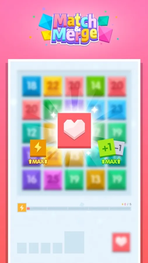 Match three or more blocks to make the number bigger. Match & Merge is a newly-made matching puzzle game with minimal graphics design, new gameplay and more. Drag a block to make it move, three or more matched blocks with the same color can be merged into a new one, have fun.