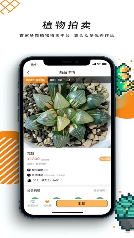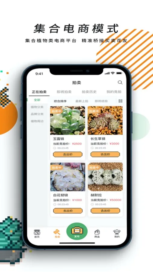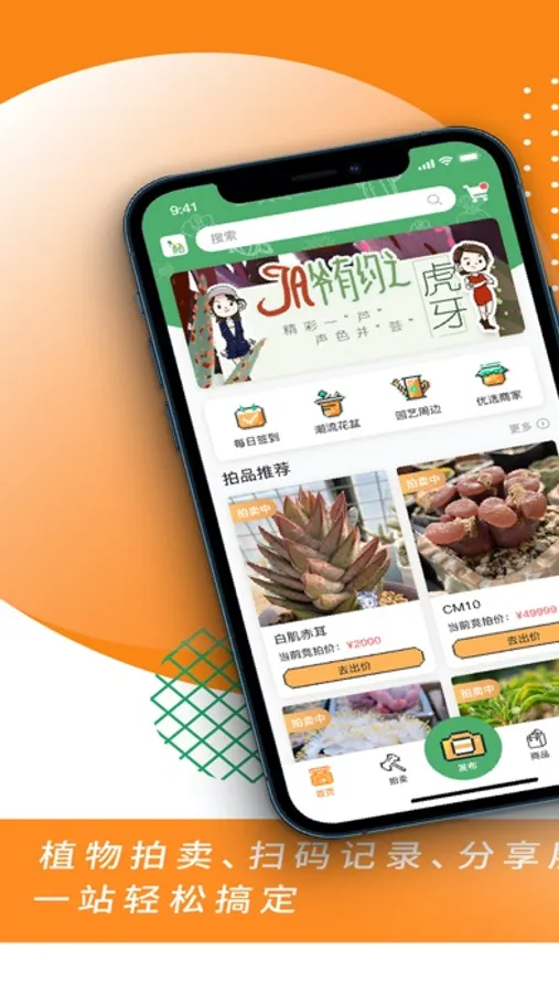 一植拍的核心功能是“拍卖和销售”,汇聚国内外顶尖多肉园艺师及其实生作品,花友可第一时间品鉴、购买、咨询,更有优质店铺入驻,销售植物及周边。提供便捷商品的同时,加强花友与园艺师、商家之间的交流。