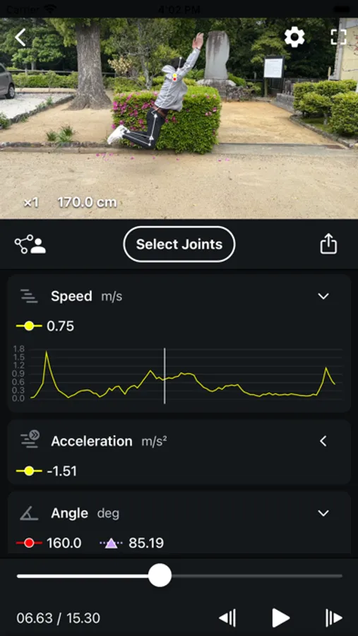 You'll get instant access to measurements like velocity, acceleration, joint angles, and angular velocity.