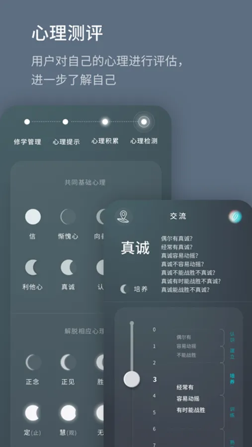-心理测评:用户对自己的心理进行评估,进一步了解自己;