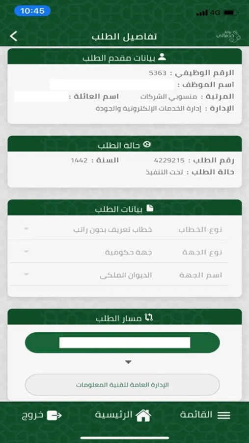 يسعى ديوان المظالم بالمملكة العربية السعودية وبناءًا على خطته الاستراتيجية المتوافقة مع رؤية 2030 للتحول الالكتروني لأتمتة العمليات الإدارية لمنسوبي ديوان المظالم من خلال تطبيق بوابة خدماتي والذي يمكن منسوبي الديوان من الإستفادة من الخدمات الإلكترونية الذاتية الخاصة بالموارد البشرية والمالية .