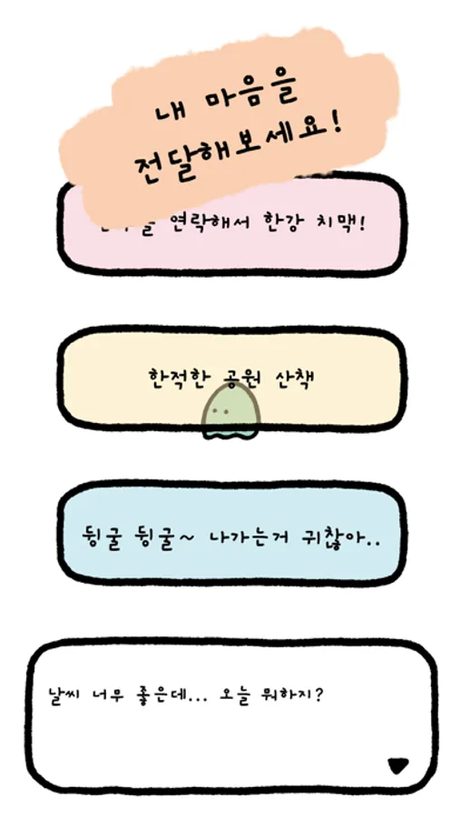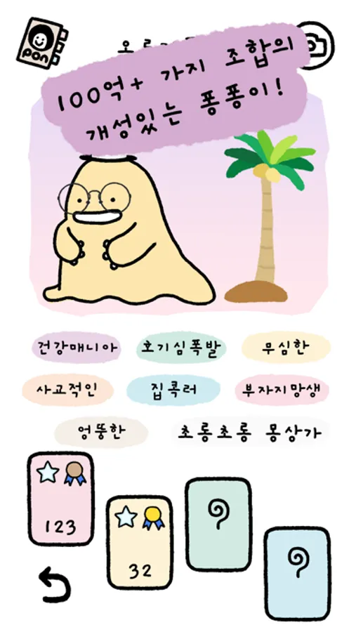 - 나에 대한 질문에 대답하다보면 퐁퐁이가 나를 닮은 모습으로 성장하게 됩니다.