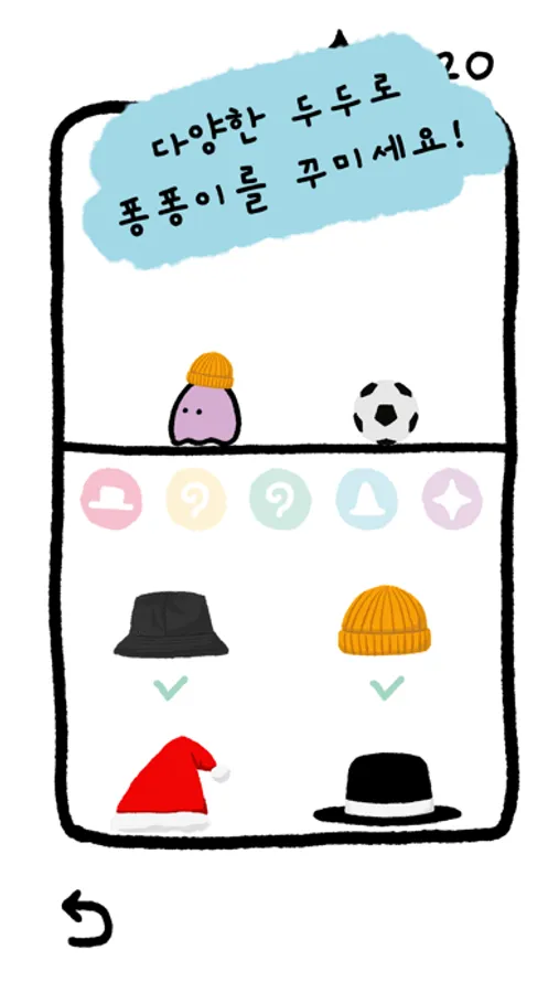 - 잉크 방울을 사용하면 퐁퐁이를 꾸며주는 아이템인 두두를 그릴 수 있습니다.