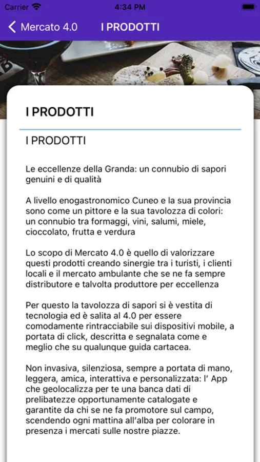 Mercato 4.0 è uno strumento semplice, intuitivo e potente per facilitare la ricerca di informazioni sulla reperibilità prodotti locali e dei loro venditori con lo scopo di favorire e potenziare le vendite da banco