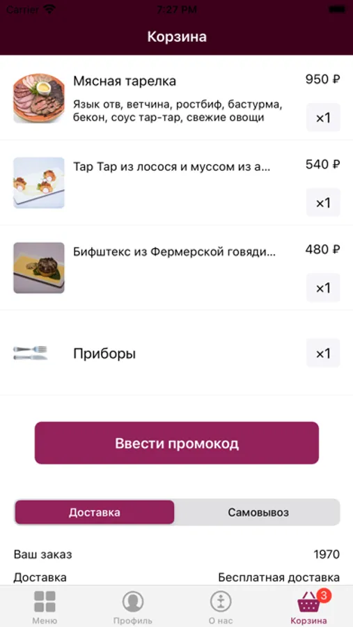 Заказывайте доставку любимых блюд в нашем приложении.